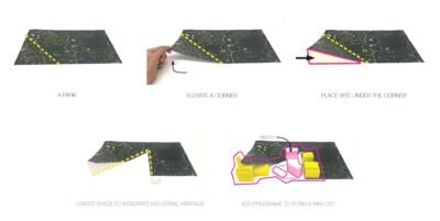To begin, BAM envisions the larger industrial site as urban parkland, which is ‘lifted’ to integrate a set of buildings. BAM then develops the architectural envelope as a porous geological form. The roof includes large openings to satisfy fire safety requirements, resulting in a design that is not fully enclosed. With its permeable façade, from within the architecture appears more as a geological shell than a traditional building. This stands in stark contrast to the massive mountain-like presence the building presents from afar. A 4-hectare roof park further reinforces this integration, offering green space for recreation, education, and public interaction, while concealing the industrial functions beneath. Overall, the design rejects the conventions of the industrial typology by blurring the boundaries between architecture and landscape.