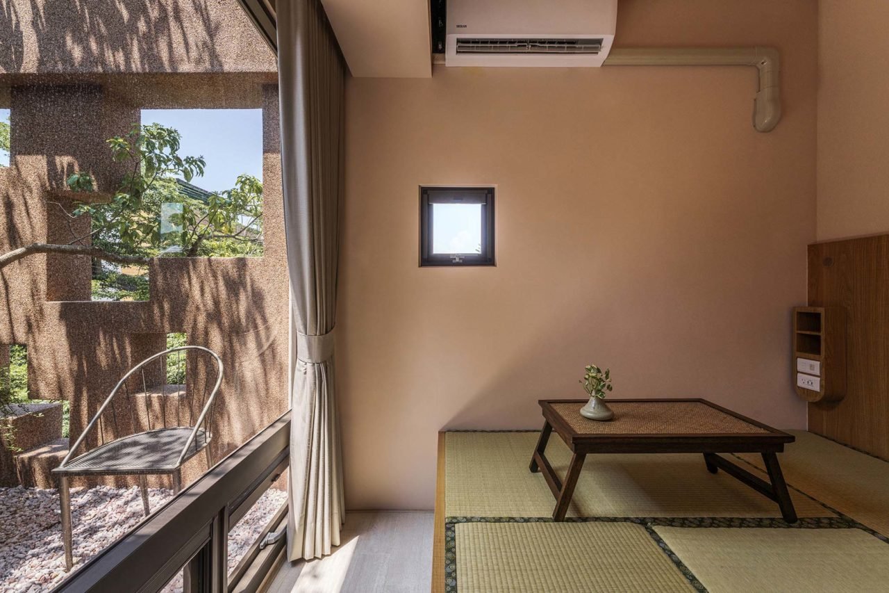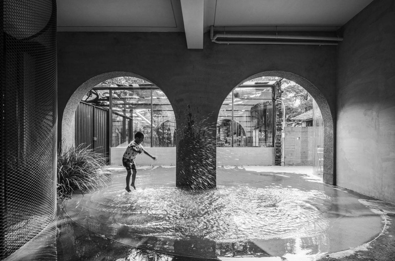 The new building skin is hand-made and expressed through the traditional stone washing method, while the small red stones on the wall feel like rice grains. The shallow pool in the atrium is a visual line and a small square. Above the first floor is the accommodation space. Now 51 years later, let the extended family members have a place to return to and the opportunity to meet again in the architecture.