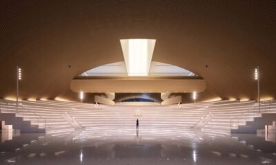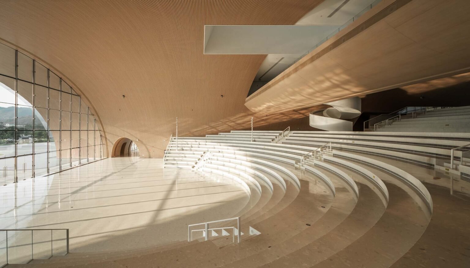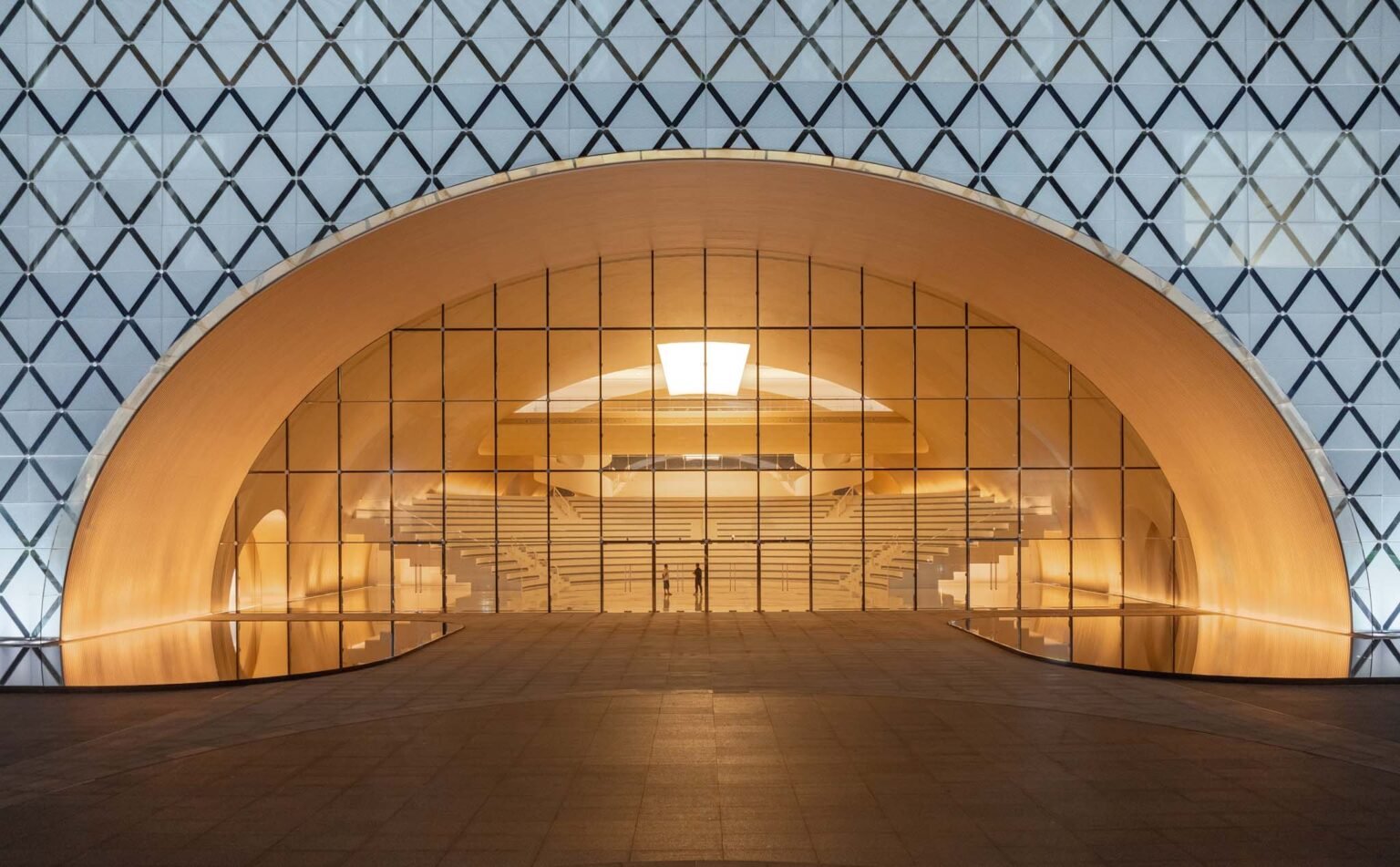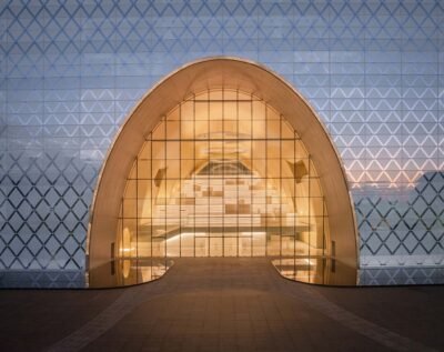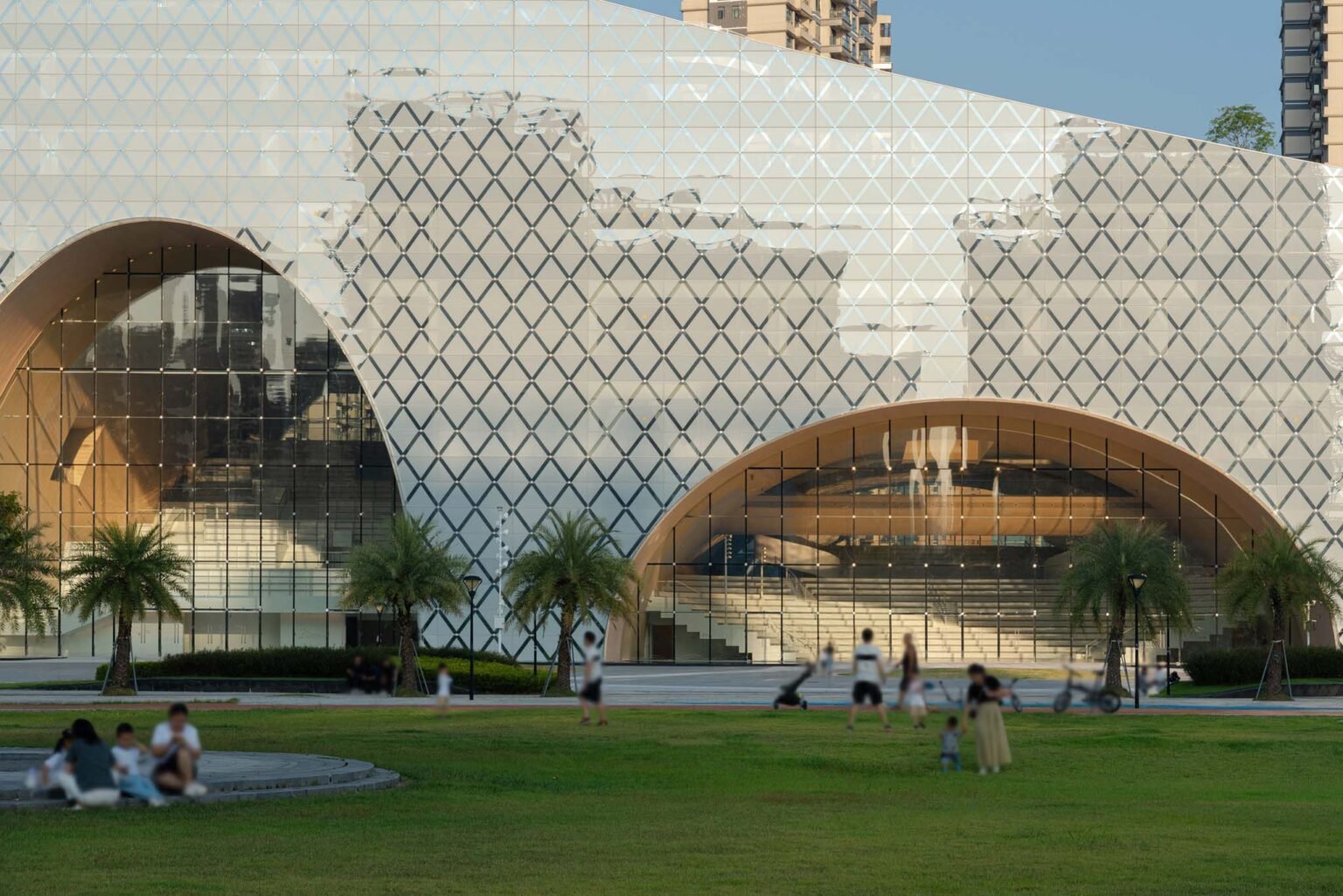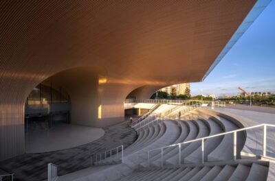 With the massive complex designed to house nine distinct functions – a library, an archives center, a concert hall, a cultural center, an art gallery, a science museum, a women’s and children’s activity center, an elderly activity center, and a youth activity center – Yunchao Xu/Atelier Apeiron endeavored to desegregate the experience to create a truly communal sense of being. Designed as three urban living rooms, each arch leads into a unique space, comprising a Knowledge Hall, a Performance Hall, and an Exhibition Hall.