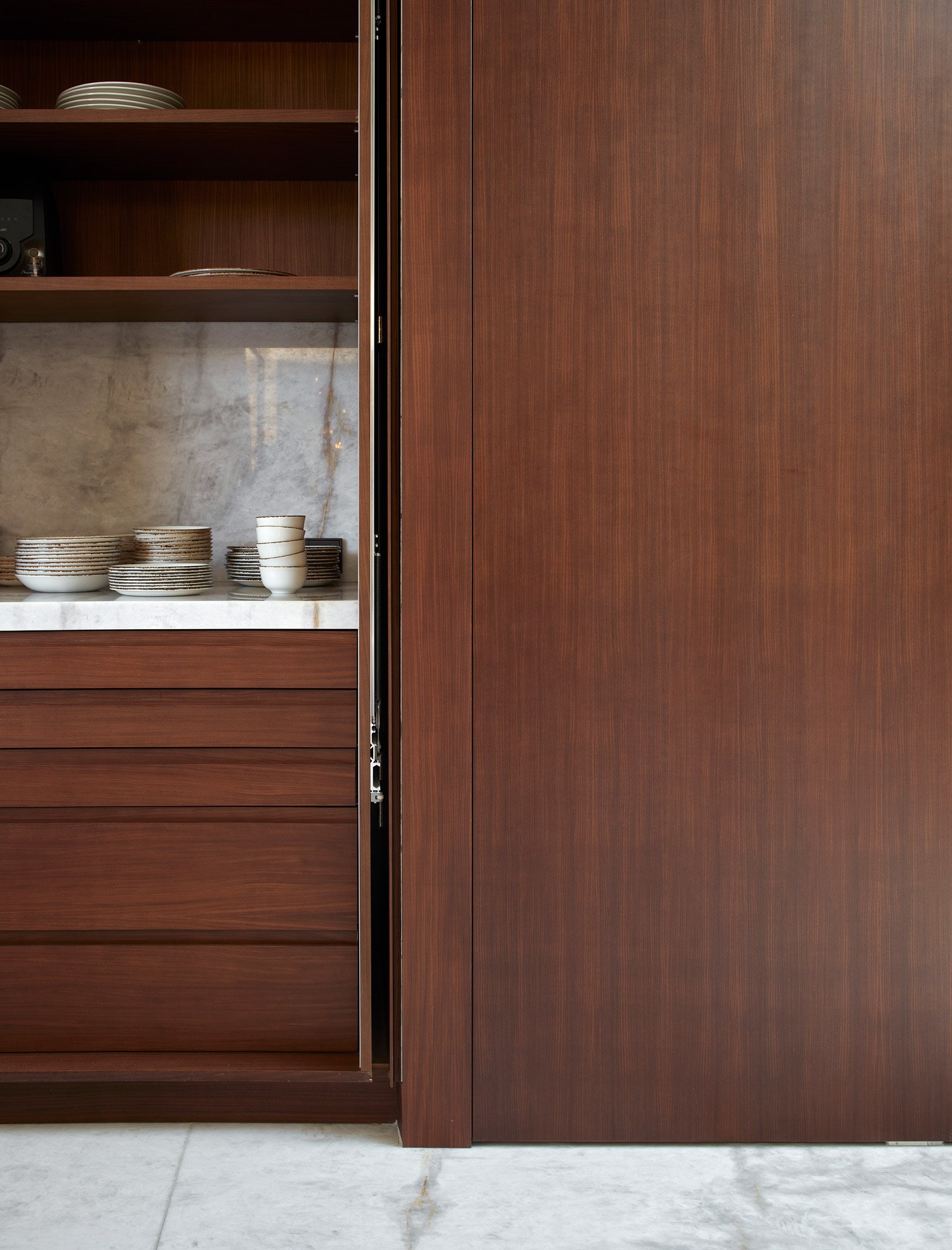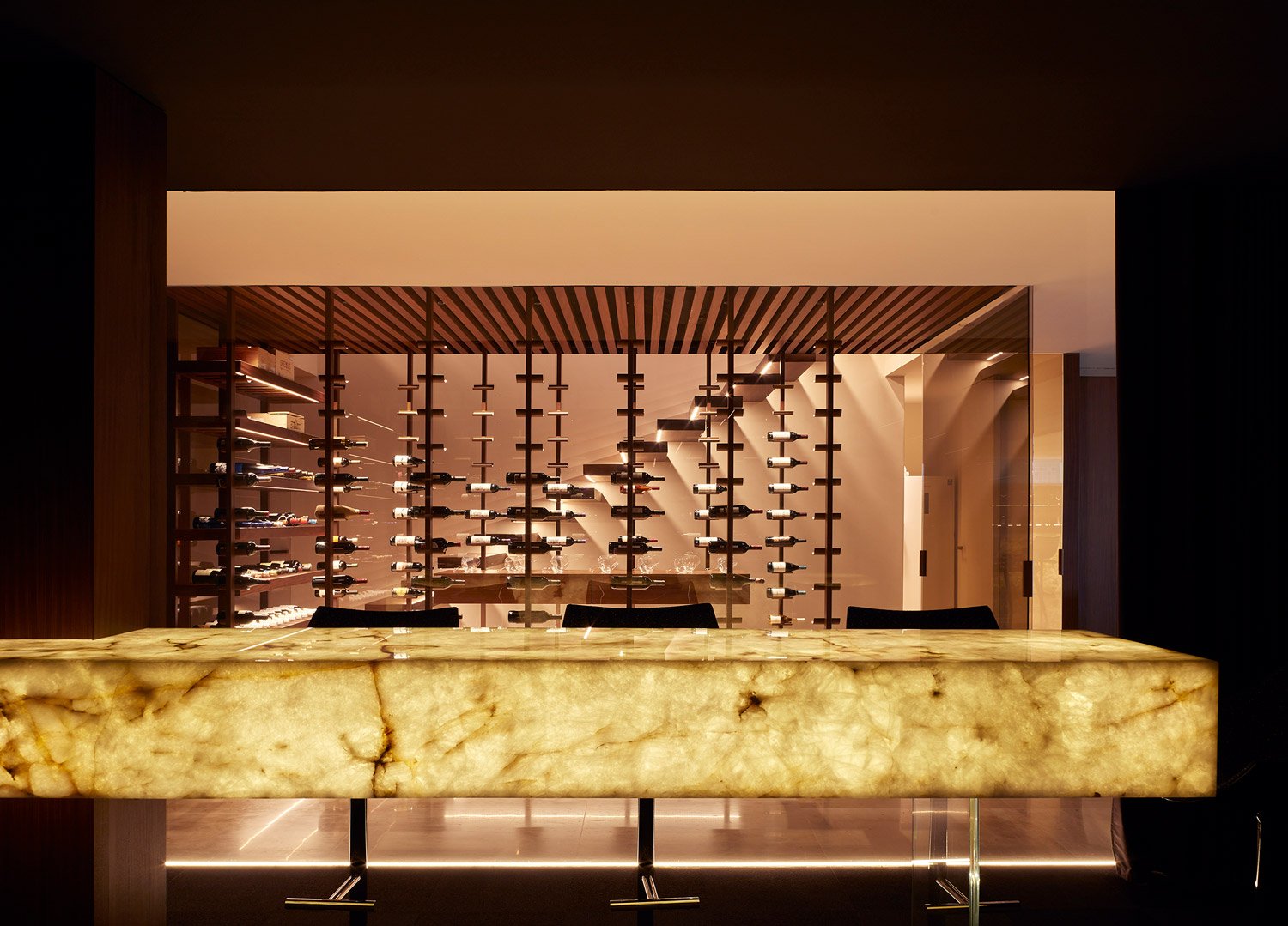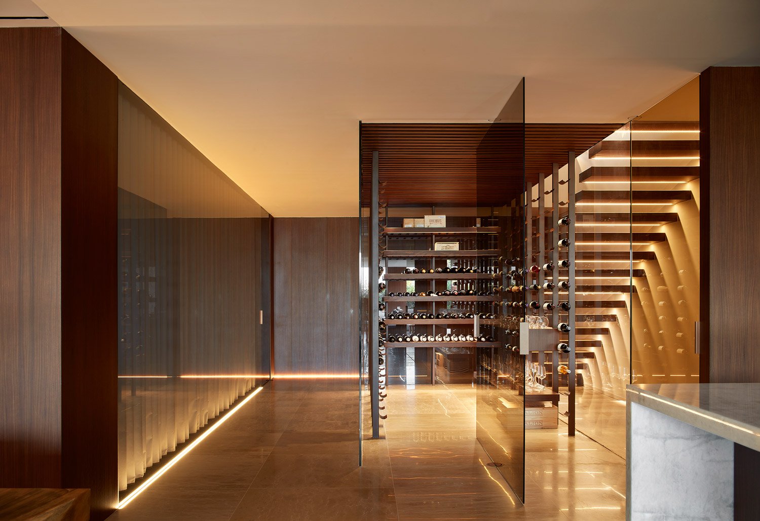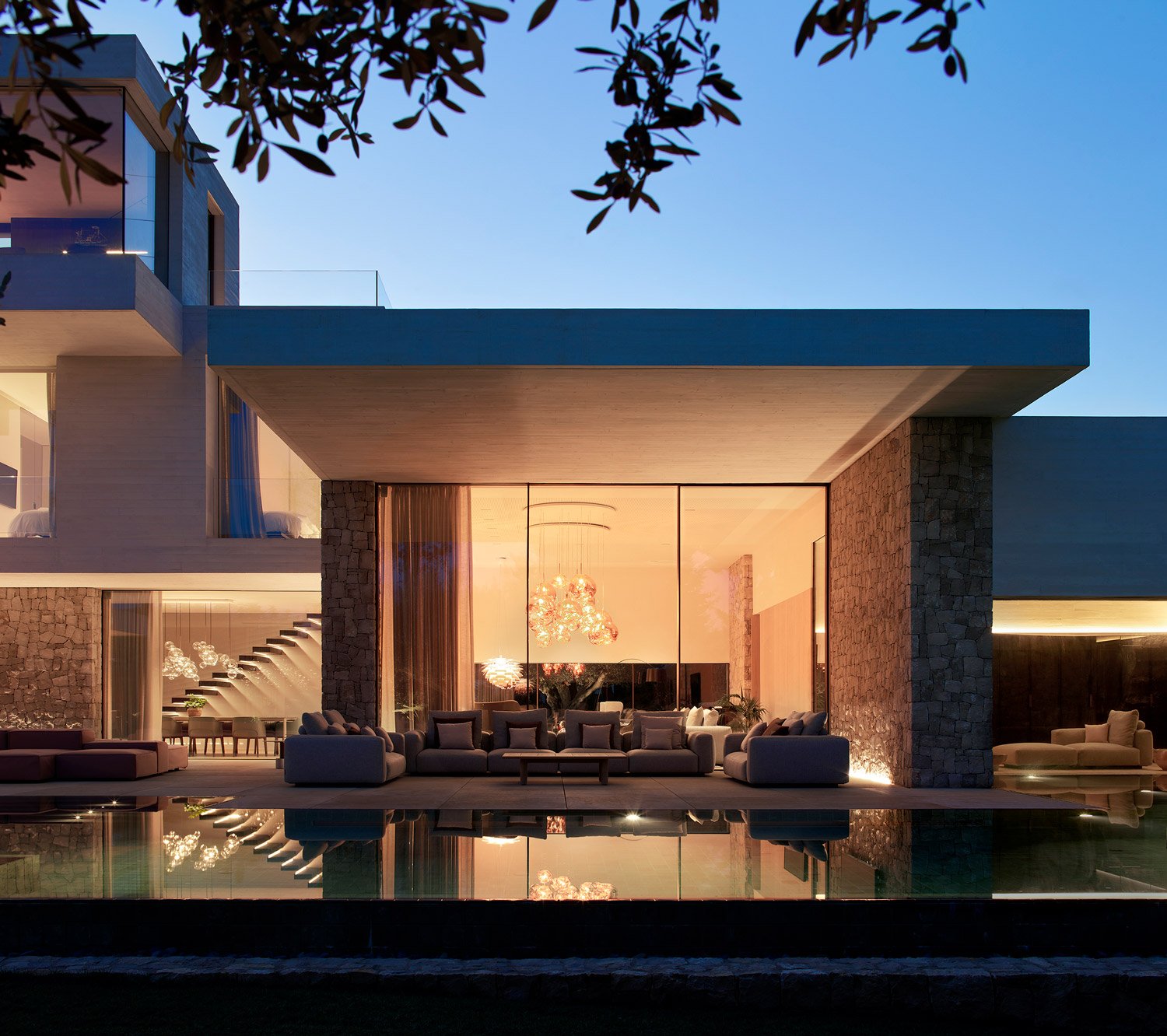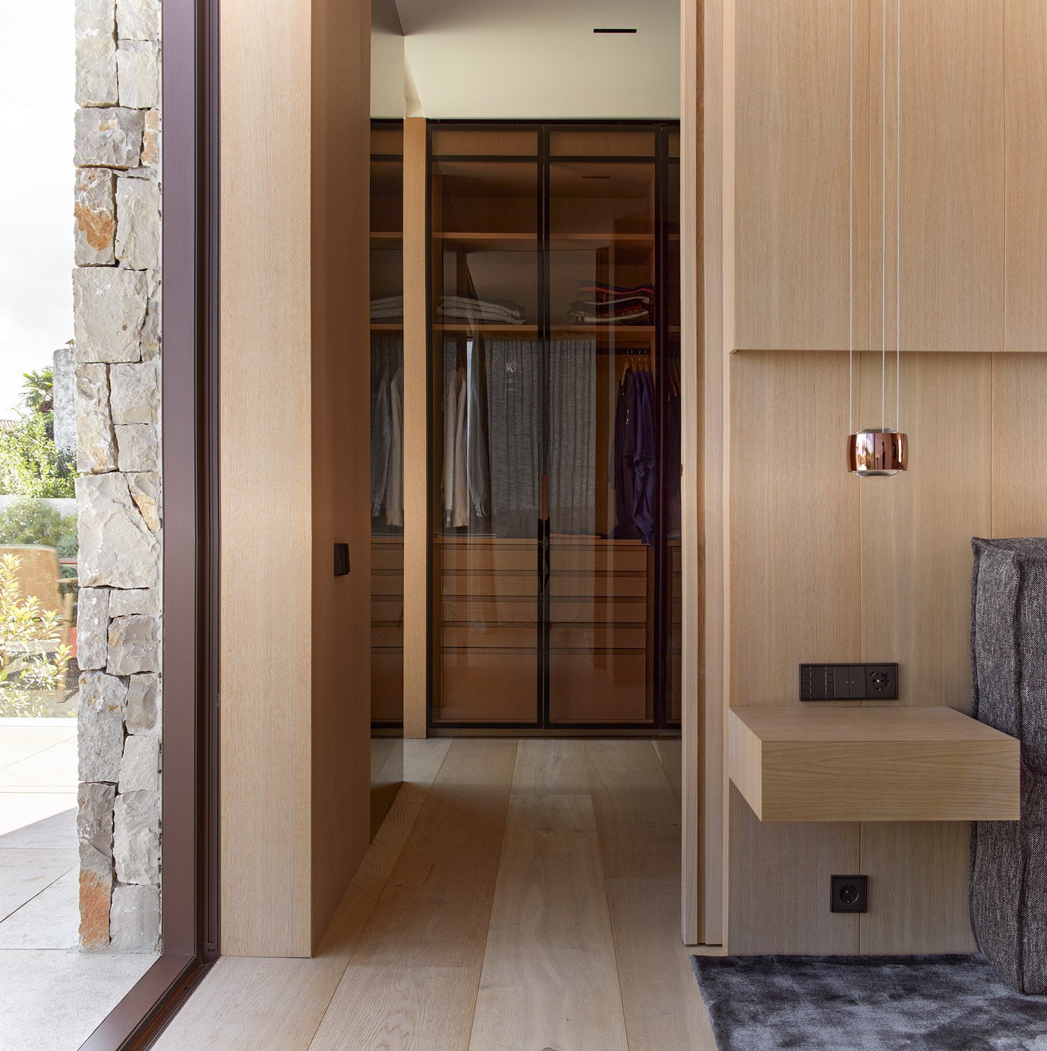 Water is an important element here, thus linking the indoor and outdoor pool to the rooms. A sliding window hidden by a wall when it is opened, becomes the link between them, thus enhancing their continuity. The slot on the