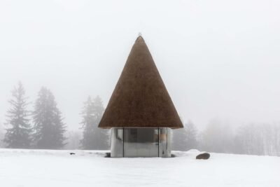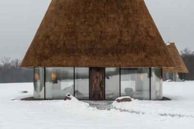 Traditional Ukrainian vernacular architecture evolved through simple yet expressive solutions: thick whitewashed walls, thatched roofs, and regular plastering as an act of care and an aspiration toward order and beauty. In YOD Group’s contemporary interpretation of traditional Ukrainian Hata-Mazanka, this pursuit of light and cleanliness is translated into fully transparent glass façades. At the same time, the roof – deliberately oversized – becomes the project’s primary architectural gesture.